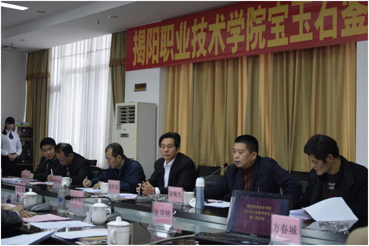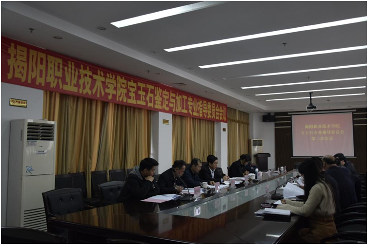 3月10日下午,在行政楼507会议厅召开我院宝玉石鉴定与加工专业指导委员会第三次会议。出席会议的委员共8人,包括贵雅天下董事长谢锡杰,揭阳日报社副主任陈镇文,国家非遗传承人、广东省工艺美术大师夏浩真,广东省工艺美术大师张炳光、郑少山,揭阳玉器产业协会执行会长林少波,广东玉商集团董事长李悦伟,工艺美术师夏焕嘉;学院出席会议的人员有:学院院长龚善初,副院长李桂鑫,教务处处长黄英铭,机电工程系主任孙培明、副主任林若波、党总支书记方春城,宝玉石教研室主任钟祥涛,以及宝玉石专业教师和学生代表。